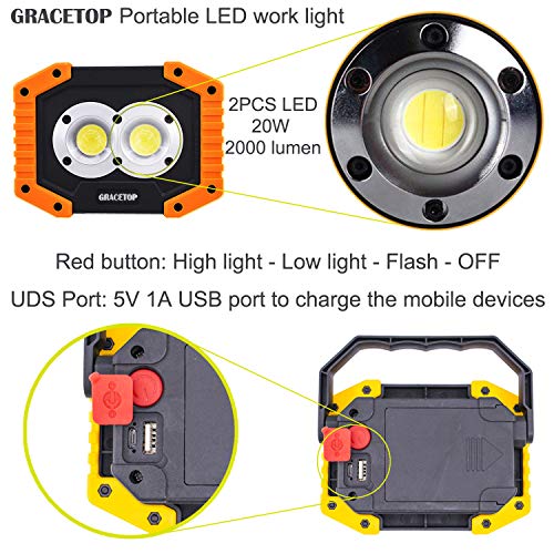 - ♣ Batteria integrata da 6400 mAh: batteria di litio 6400 incorporata e con la porta del USB per caricare il mobile o altri dispositivi. Rendi le tue attività all'aria aperta sicure e felici. Non dovrai più preoccuparti delle prolunghe per far sì che la luce nasconda le cose in vista, la luce potrebbe raggiungere proprio dove ne hai bisogno, fornire luce nell'angolo giusto quando si lavora sulle automobili.