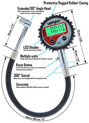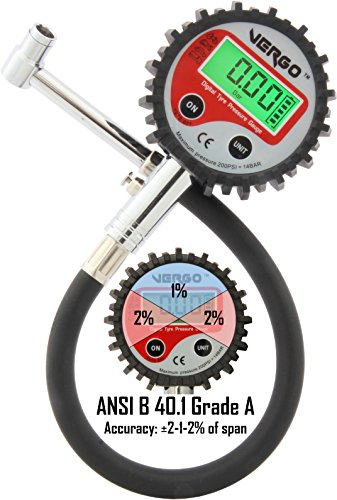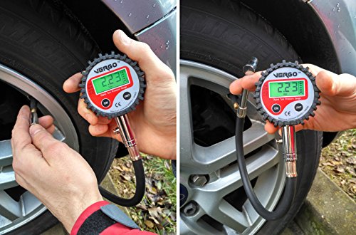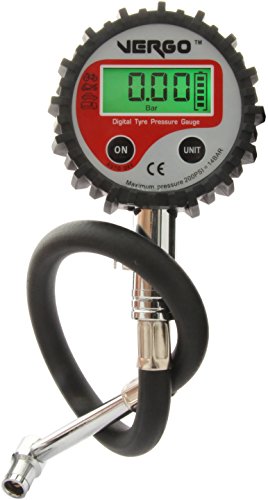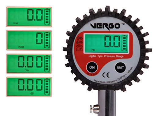 VERGO Manometro Pressione Digitale per Pneumatici Tubo Flessibile Rinforzato - Misuratore di Prova Pressione - LCD Retroilluminato - Scala Multipla 0-200 PSI/0-14 Bar - Auto Camion Moto