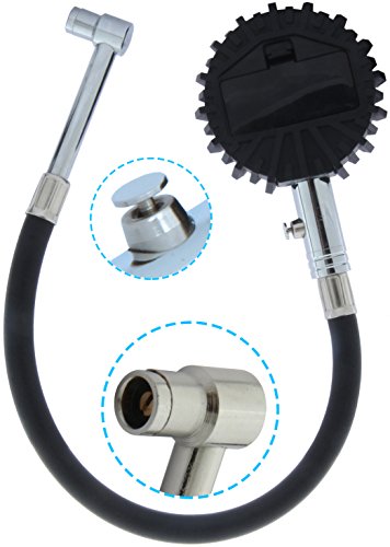 Manometro VERGO è tutto ciò che serve per garantire la giusta pressione nei pneumatici del vostro veicolo. 》Adatto SOLO per VALVOLE SCHRADER ✔Costruire per durare - Acciaio solido, costruzione in ottone, tubo in gomma rinforzato e mandrino a 90° ✔Contiene la pressione - Anche fuori lo stelo della valvola, l'indicatore mostrerà ancora la vostra misura fino a quando si decide di rilasciarlo ✔Pulsante di pressione - Permette il rilascio controllato della pressione ✔Display LCD retroilluminato- Lettura chiara e accurata ✔Accensione(ON) automatica - quando è collegato alla valvola e Spegnimento(OFF) - quando non e utilizzato per alcuni secondi ✔Pile riquieste - 2x1.5V(AAA/R03) ✔Tubo di gomma rinforzato e estremità a 90° - Tubo flessibile, consente un facile accesso quando è difficile raggiungere la valvola del pneumatico. Guida utente: +Premere il pulsante"ON"per iniziare a utilizzare il manometro digitale. +Premere il tasto "UNIT" per cambiare unità di misura tra psi, bar, kPa o kg/cm2. +Per utilizzare, assicurarsi che il misuratore è impostato a"0"(zero) e spingere l'ugello sulla valvola del pneumatico in modo che una buona tenuta avviene tra la valvola e l'ugello per ottenere una lettura accurata. +Una volta che l'ugello è posizionato correttamente, attendere che la lettura della pressione per stabilizzare e quindi rimuovere il calibro dallo stelo della valvola e leggere la misura. +Dopo il successo di rilascio di misura la pressione dal manometro premendo il pulsante di rilascio d'aria integrato. +Per spegnere l'indicatore premere il pulsante "ON" o lasciare l'indicatore poiché si spegnerà automaticamente. +Suggeriamo di misurare la pressione dei pneumatici almeno una o due volte al mese.