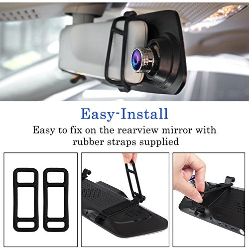 - 【Installazione facile】: È molto facile installare questa cam da cruscotto a specchio, basta installarlo sul precedente specchietto retrovisore con le cinghie di gomma in dotazione, non è necessario rimuovere lo specchietto retrovisore dell'automobile.