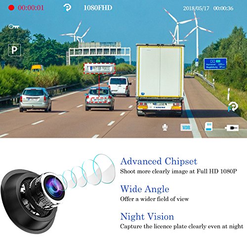- 【Specchietto retrovisore】: Non si tratta solo di una fotocamera con doppio obiettivo ad alta risoluzione, ma anche uno specchietto retrovisore. Funzionalità eccellente con vetro blu antiabbagliante avanzato 2.5D, che offre una visione posteriore chiara e completa.