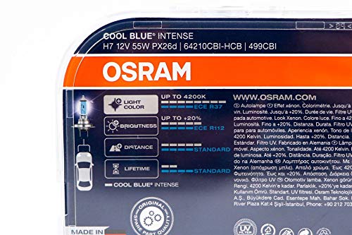 64210CBI-HCB COPPIA LAMPADE OSRAM COOL BLUE INTENSE H7, FARI ALOGENI PER AUTO, 12V 55W 4200K XENON LOOK