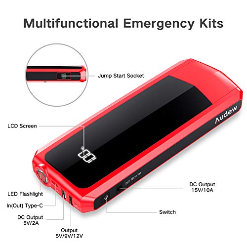 - ✔【6 in 1 Combinazione】Avviatore emergenza per auto + Power Bank + Torcia LED + Segnale Luminoso di SOS+ Quick Charge Port(USB&Tipo-c) + Power per l'Elettronica del Veicolo. Audew avviatore auto può aiutare il guidatore in molti modi, soprattutto a chi guida per lunghe distanze, a chi affronta avventure, chi fa viaggi fuori porta, può essere molto utile in molte occasioni nella vita quotidiana, in situazioni di emergenza, durante i viaggi, ecc.
