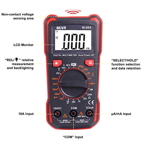 BEVA Mutimetro Digitale Professionale, Tester Digitale Professionale Automatico di AC/DC, Il Multimetro con Display LCD è in Grado di Rilevare Tensione, Corrente, Resistenza, ecc.