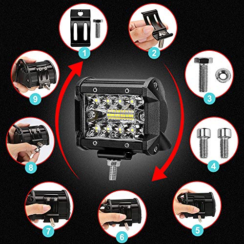 - 【Buona funzione impermeabile】 Certificato CE e RoHS. Questa lampada da lavoro con una grande capacità di resistenza all'acqua in tutte le condizioni, per mostrare una luce molto brillante, questa lampada da lavoro a profondità LED funziona sotto la pioggia o in ambienti difficili