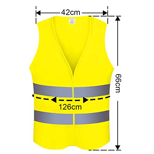- 【Dimensione universale】 gilet ad alta visibilità ha una dimensione di 64x65 cm (larghezza x lunghezza), circonferenza del torace 126 cm, una taglia per tutti. Progettato con chiusura in velcro sulla parte anteriore del giubbotto, comodo per regolare la larghezza del giubbotto di sicurezza, assolutamente nessun problema da indossare sopra una spessa giacca invernale.
