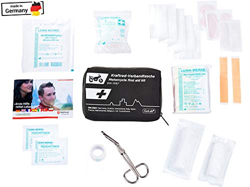 GoLab Set di primo soccorso per moto, piccolo e compatto, con giubbotto di sicurezza per tutti i paesi europei (Austria, Svizzera, Italia, Germania, ecc.)