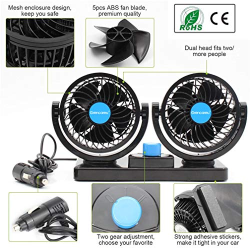 Grencareu Ventilatore 12 Volt Doppia Testa Ventola di Raffreddamento avec...
