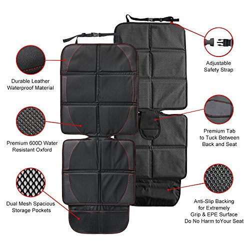 • Protegge bene Seggiolino Auto - fatta di stoffa 600D Oxford e ha aggiunto un po 'di strato interno di schiuma per il corretto spessore, contro dentellature, graffi, sporco, e di più per il vostro veicolo tessuto interno.