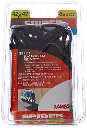 - Rete elastica Ø 4 mm con rivestimento PP antistrappo. 6 ganci regolabili con diametro 3 mm, dimensioni cm 42x42
