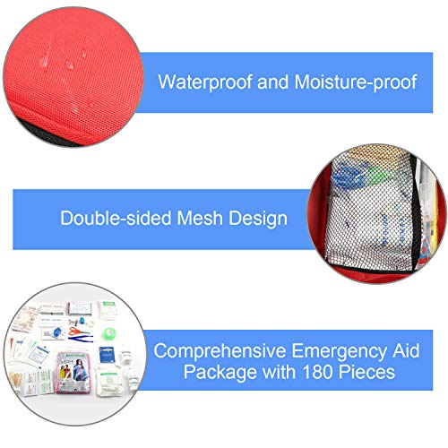 • Custodia di emergenza per primo soccorso: il kit contiene 180 pezzi di pronto soccorso che coprono l'uso prevalente negli incidenti quotidiani, che possono aiutare a curare le ferite immediate.