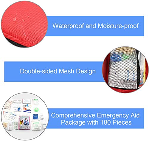 - Custodia di emergenza per primo soccorso: il kit contiene 180 pezzi di pronto soccorso che coprono l'uso prevalente negli incidenti quotidiani, che possono aiutare a curare le ferite immediate.