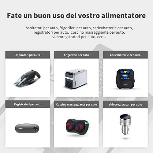 • 【Compatibilità universale】Funziona perfettamente con QUALSIASI dispositivo inferiore a 120 W, compresa la pompa per gonfiare gli pneumatici, l'aspirapolvere per auto, il ventilatore per auto, il cuscino per massaggi auto, ecc