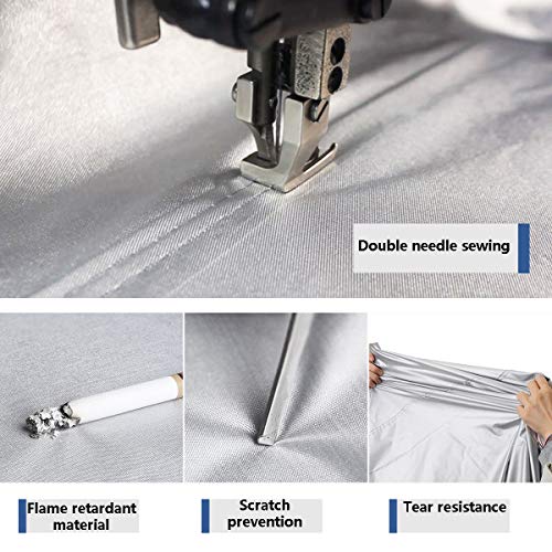 • 【Materiale】- Tessuto di nylon,il taffetà in argento è preferibile per riflettere la luce del sole e proteggere l'auto dalle alte temperature.Il materiale impermeabile 210T ha prestazioni di impermeabilità più elevate.