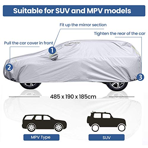 MATCC Copriauto Telo SUV Copriauto Impermeabile Pieghevole Anti UV 210T Anti Pioggia Sole Copriauto per SUV(485 * 190 * 185cm)