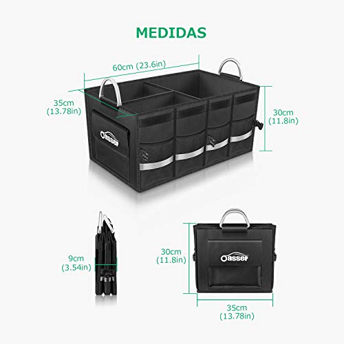 • 【Tanto spazio per te】 - L' organizer bagagliaio Oasser è la scelta perfetta per tenere in ordine la tua auto. Grazie alle dimensioni molto grandi, 60cm x 35cm x 30cm, avrai tutto lo spazio di cui avrai bisogno! L' organizer è composto da 3 scomparti con due partizioni mobili, in modo tale che, se fosse necessario, l' organizer possa diventare un unico grande contenitore
