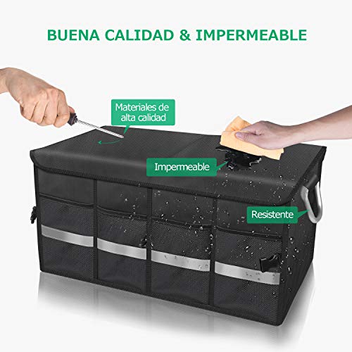 Oasser Organizer Bagagliaio Auto Organizzatore Baule SUV Camino Pieghevole Facile da Pulire Maniglie in Alluminio Fondo Antiscivolo con Fissaggio Copertura Impermeabile Nero