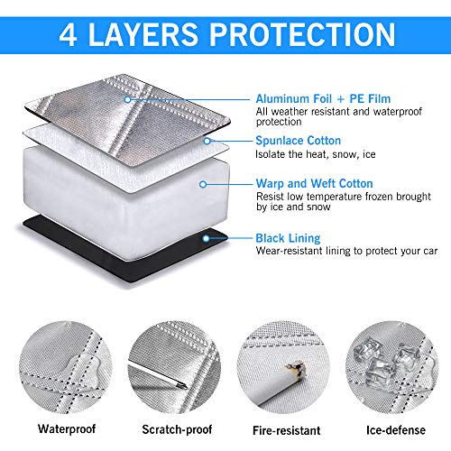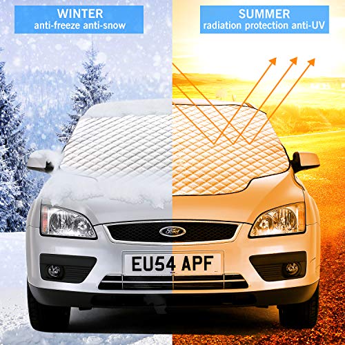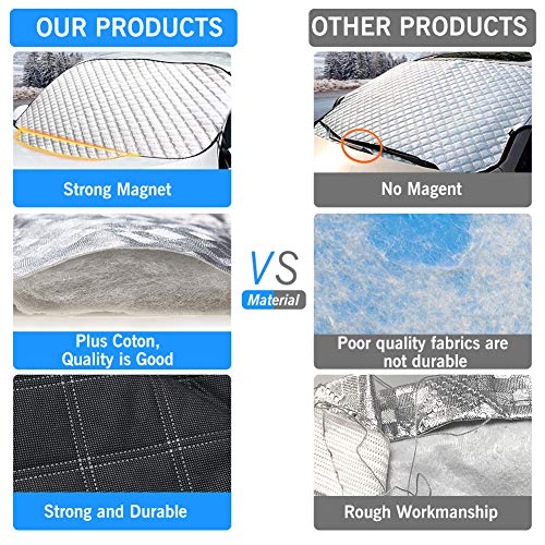 - ➡️ Usato tutto l'anno: la copertura per auto può tenere la finestra anteriore dell'auto lontana dal gelo e dalla polvere in primavera, i raggi solari UV in estate, le foglie in autunno, il gelo / neve / ghiaccio in inverno, può essere utilizzato tutto l'anno, dura a lungo nel tempo.