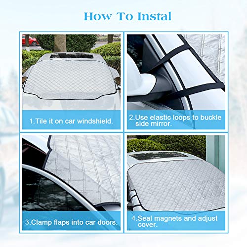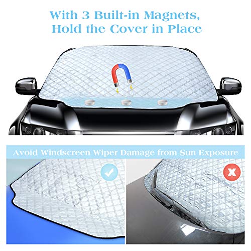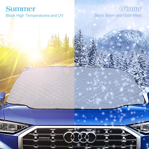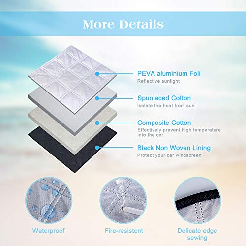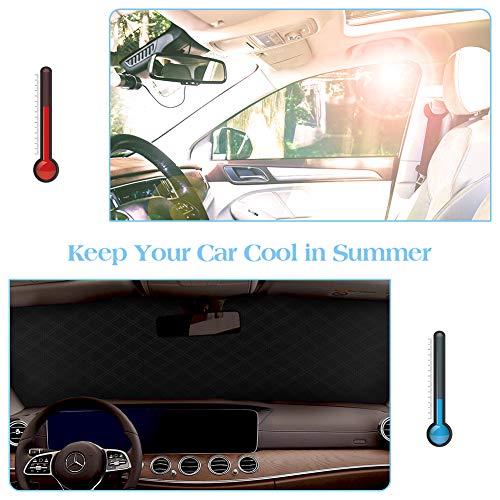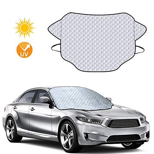 - USI DA QUATTRO STAGIONALE: E’ un parasole per parabrezza e adatto per tutte le stagioni, che lo protegge il tuo auto giorno e notte. Difende dal gelo e dai polveri in primavera, schermare la il cruscotto dai raggi UV in estate, facile da rimuovere le foglie cadute dalla cristallo anteriore della tua macchina, e anche puo' difendere la parabrezza dal neve e ghiaccio in freddo inverno