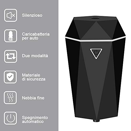 Rovtop Mini USB Diffusore Auto Umidificatore ultrasonico di Nero