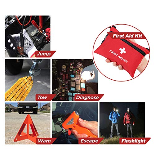 - 《Regalo perfetto》Questo kit di emergenza per auto è un regalo ideale per ogni proprietario di auto, famiglia e amici. Tutti sono accessori di alta qualità per assicurarti di essere in grado di rispondere alla maggior parte delle situazioni di emergenza.