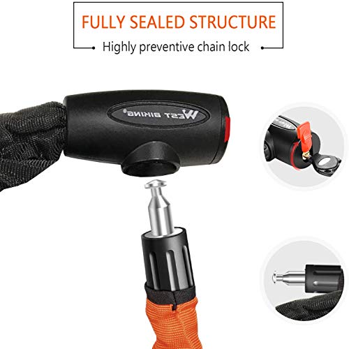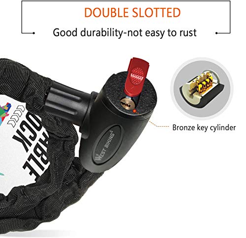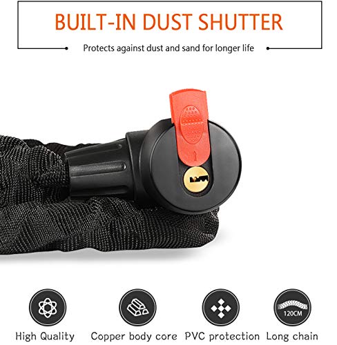 • DESIGN PERFETTO: La lunghezza della catena è di 120 cm, diametro 10 mm, lunghezza e spessore ottimali. Il cilindro della serratura ha un coperchio impermeabile e antipolvere, la chiave è anche unica, la forma di prugna e la funzione antifurto sono più forti.