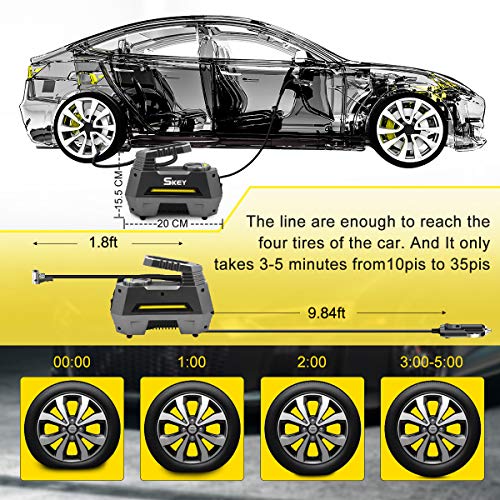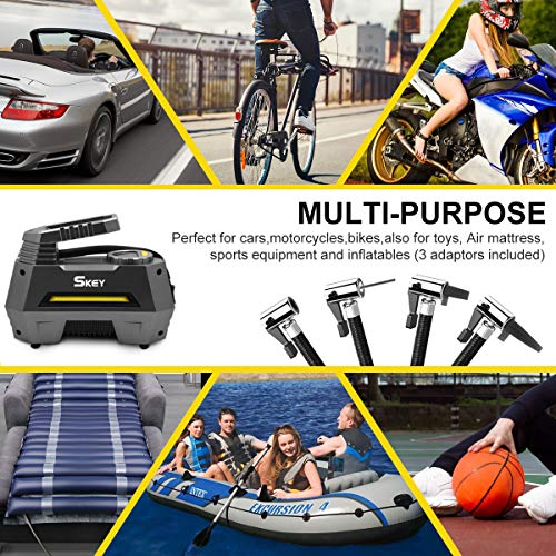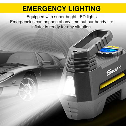SKEY Compressore Portatile per Auto, gonfiatore Digitale a 12V DC, Pompa per Pneumatici 150 PSI con Luce a LED per Auto, Biciclette, Moto, Palline, materassi ad Aria e Altri