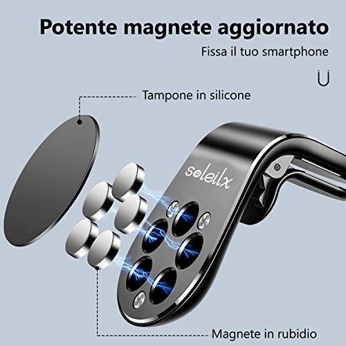 soleilx Supporto Auto Smartphone Magnetico Universale Porta Cellulare Nero