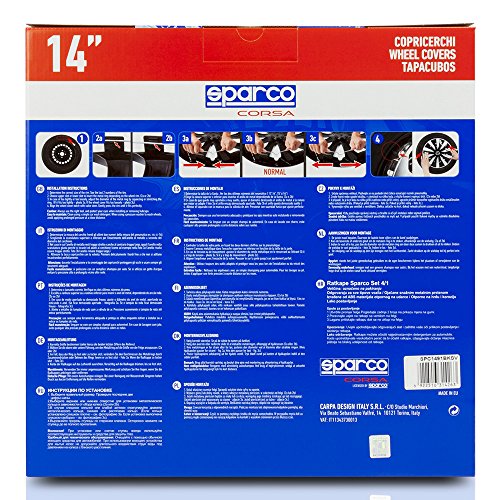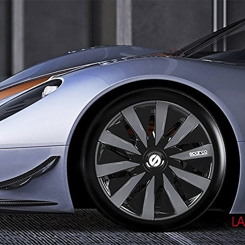 Sparco SPC1491BKSV Copriruota, Nero/Argento, 14", Set di 4 Nero/Argento