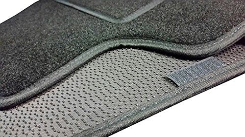 Tappetini auto compatibili anteriori in moquette con strappo per un maggiore grip al pavimento. con logo ricamato e battitacco sul tappeto anteriore lato guida. moquette nera di alta qualità inodore. bordatura in tessuto che evidenzia la forma e lo rende sportivo ed elegante. dotata di base antiscivolo su tutta l'area dei tappeti e strappi per una maggiore aderenza al suolo.