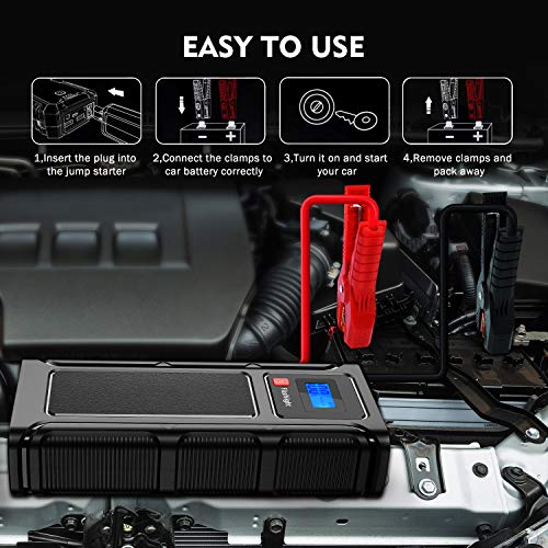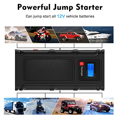 - 【Visualizzazione digitale】 Questo avviatore per auto conferma la carica residua della batteria e la potenza di uscita sullo schermo LCD e ha un'eccellente visibilità di notte. 4 s corrente di picco 1000A, in grado di gestire tutti i veicoli a 12V (incluso motore a benzina da 6,5 litri o motore diesel da 5,0 litri) a temperature rigide (da -20 a 65 ° C).