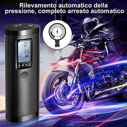 - 【5 modalità di regolazione】- Modalità Auto(0-65PSI); Modalità Moto(0-55PSI); Modalità Bicicletta(0-100PSI);Modalità Personalizzata(0-15PSI).una volta raggiunto il pre-up Impostare la pressione, compressore portatile arrestarsi automaticamente , fornire un uso sicuro e affidabile per gli utenti che non hanno familiarità con l'impostazione del valore di pressione.