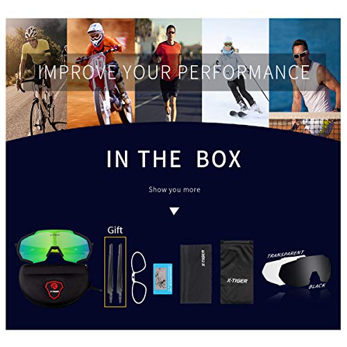 X-TIGER Occhiali Ciclismo CE Autentica Polarizzati con 3 Lenti Nero E Verde