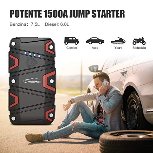 YABER Avviatore Emergenza per Auto, 1200A Jump Starter Auto Portatile(Fino a 7,5L a Benzina o Diesel da 6L) Avviatore Batteria per Moto/Auto Impermeabile IP68 Power Bank con QC 3.0