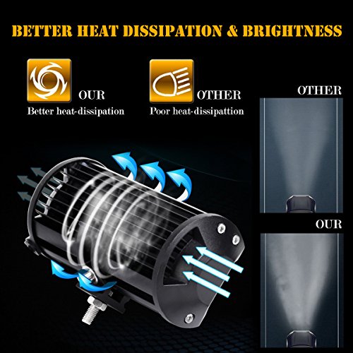 - ▶♫ 【5” 168W Faro da Lavoro】Questo faro contiene 56 Leds Cree Chip da 3W avanzato e scocca di prima qualità, 16800lm luce spot con la tecnologia led più avanzata - costruito in lega di alluminio di alta qualità con aletta di raffreddamento, non illumina solo la strada ma anche la montagna come fosse giorno, La luce bianca fredda 6000K si concentra sulla macchina più vicina al colore della luce naturale, e una visione più chiara può ridurre notevolmente l'incidenza degli incidenti stradali.