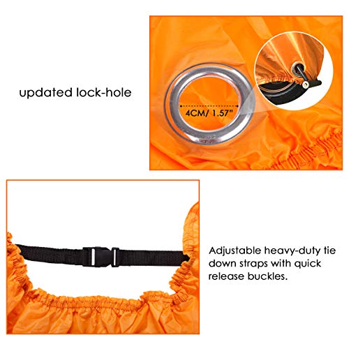 - [Misura Comune] – Potrebbe andare fino a 96,5 pollici (245 cm), peso 620g, è adatto per la maggior parte di moto. Va bene anche per la bici. Ha un design di buco della serratura che consente a utilizzare il telo mentre l'utilizzo del lucchetto.
