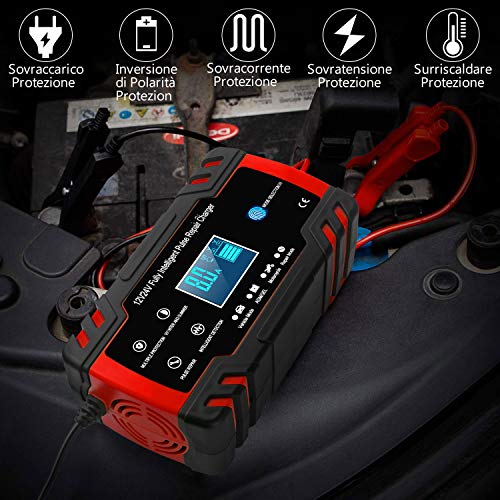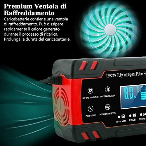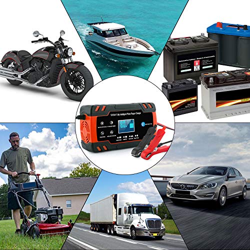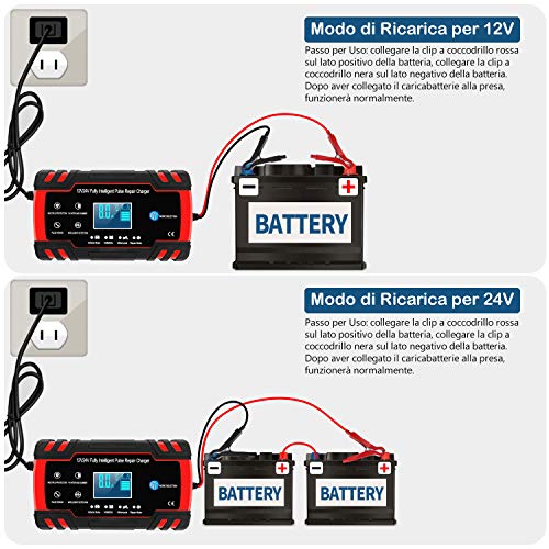 - 【Ampiamente Usato】Adatto per batterie al piombo acido, 6-150AH (12V), 6-100AH (24V) .È utilizzato per batterie GEL, AGM, Wet, EFB, MF, SLA. (Non includere batterie al litio) .È possibile diagnosticare e riparare i problemi della batteria e prolungarne la durata. Adatto a auto, moto, camion, tosaerba, barche.