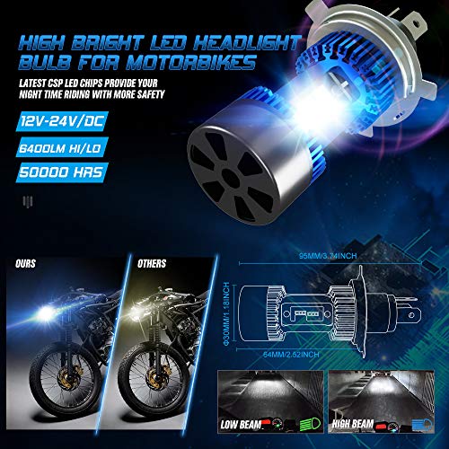 - EMC INTEGRATA: - Con EMC integrato, questa lampada LED H4 aggiornata è ampiamente compatibile con la maggior parte delle motociclette 12v-24v senza causare problemi - costruita per durare con tecnologia innovativa. Compatibile con H4, 9003, HB2, HS1