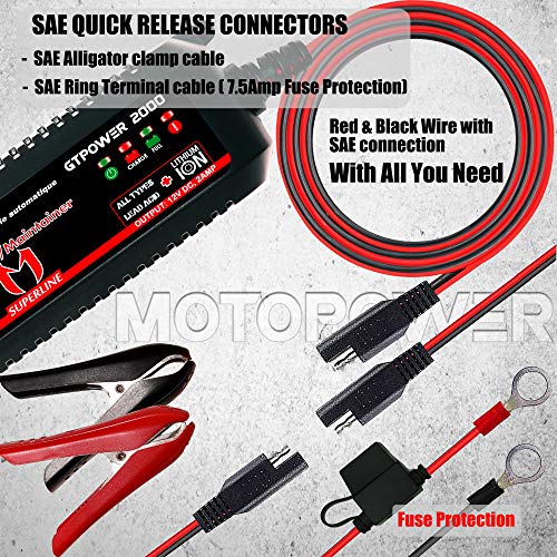 - ✅Indicatori LED - 4 indicatori LED: alimentazione, ricarica, carica / mantenimento e collegamento inverso. Con design dei connettori a sgancio rapido SAE.