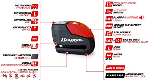 RADIKAL RK10 Antifurto Blocca Disco Allarme 120 Db Omologato Sra, ø10 Doppia Chiusura