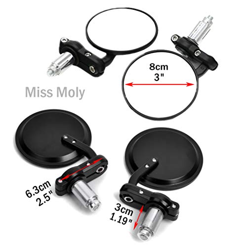 Rotondi Moto Specchietti Retrovisori Laterali 7/8'' 22mm Specchio di #2-Nero
