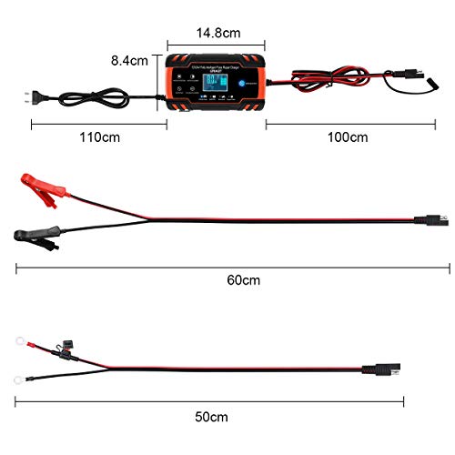 - 【Compatibilità】 È severamente vietato Carica in modo efficiente tutte le batterie SLA da 12V/24V 8A (Wet, MF, GEL e VRLA), AGM (Flooded ed EFB), LiON (24V LiFePO4), riparando i problemi della batteria, riparando batterie scariche e solfatate per batterie più lunghe vita.