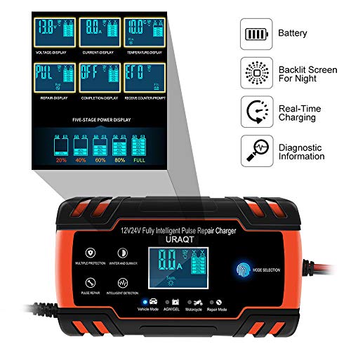 URAQT Caricabatteria Auto, 12V/24V 8A Multi Protezioni Caricatore Rosso