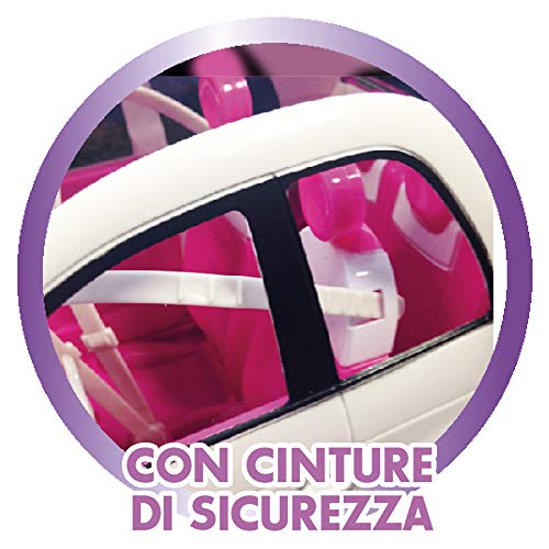 Descrizione La decappottabile perfetta per portare in giro la propria bambola. fiat 500, la macchina fashion con interni rosa e cerchioni viola. Allaccia la cintura alla bambola e sarà pronta per tante avventure. Avviso di sicurezza / Visualizza tutta la Descrizione prodotto