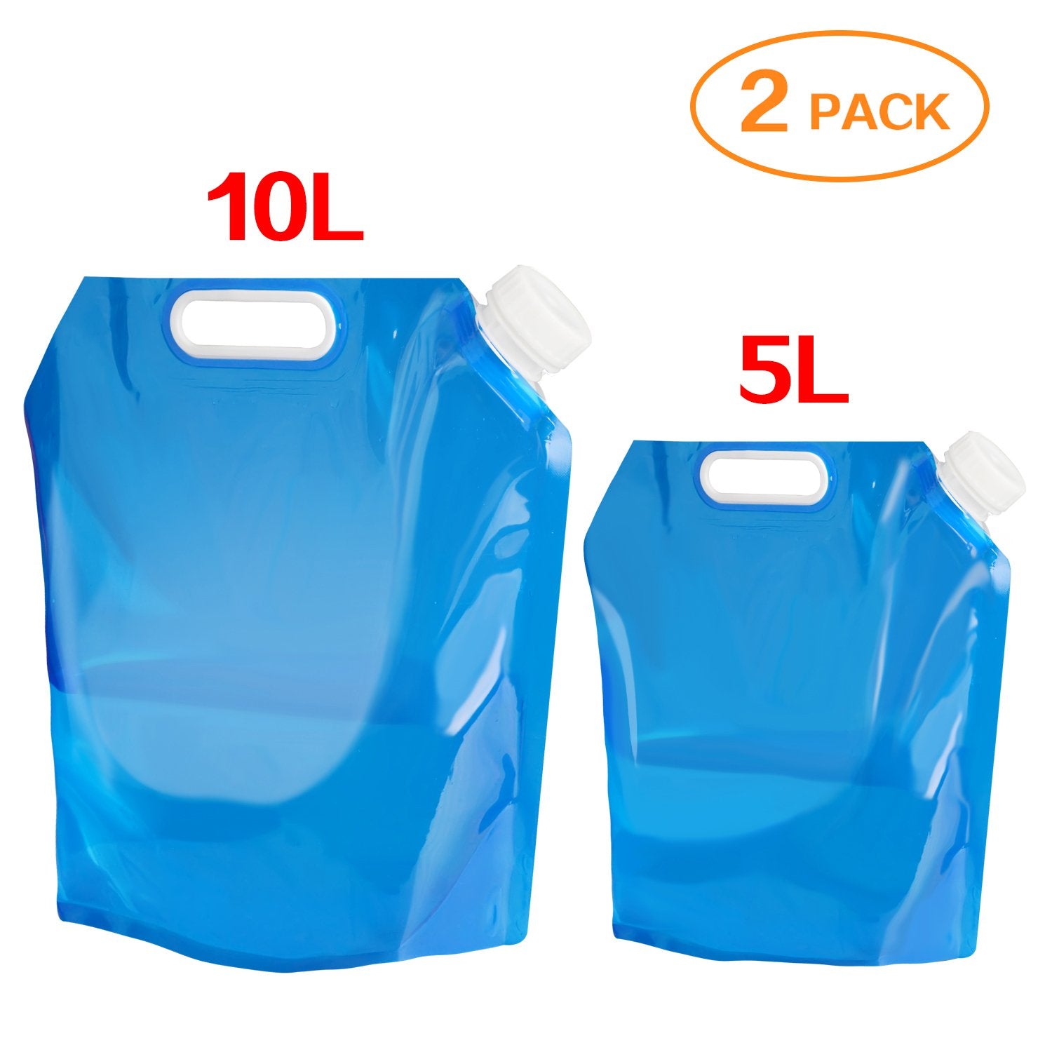 Aboat, borsa porta acqua pieghevole, per esterni, auto, sport, campeggio, trekking, pic nic, barbecue; confezione doppia da 5 l e 10 l.