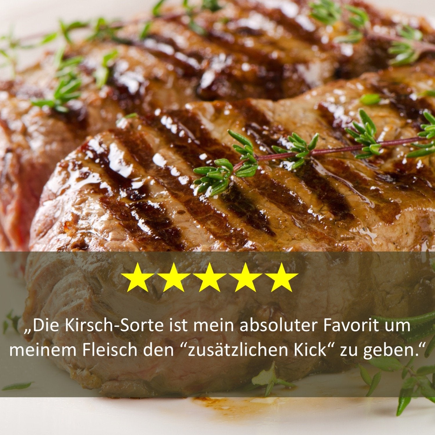 • FRUTTATO KIRSCH FUMO SAPORE: i chip di fumo ciliegia generano un po 'dolce, fruttato sapore di fumo. I chip ciliegia-fumatori in armonia con tutto il sapore della carne.