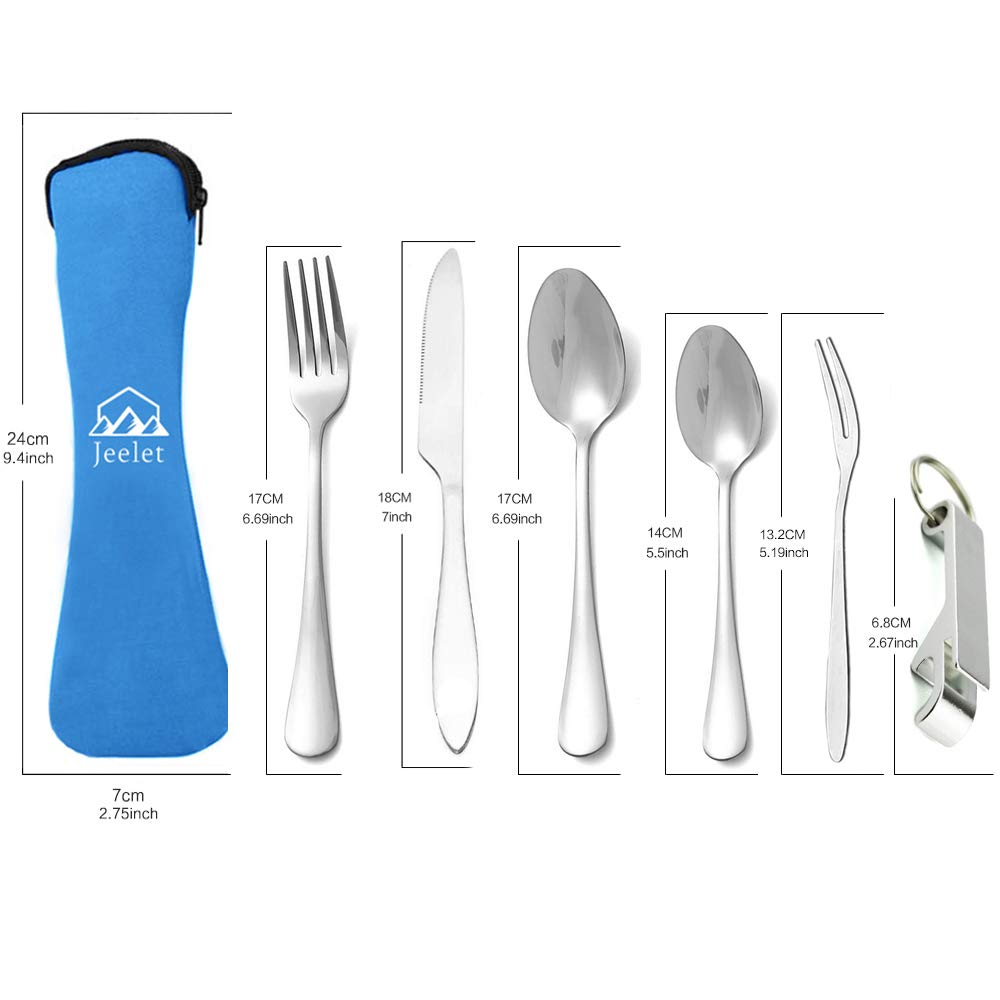FYSHOP Set di Posate da Campeggio Viaggio in Acciaio Inossidabile Posate Portatili con Custodia in Neoprene Ufficio