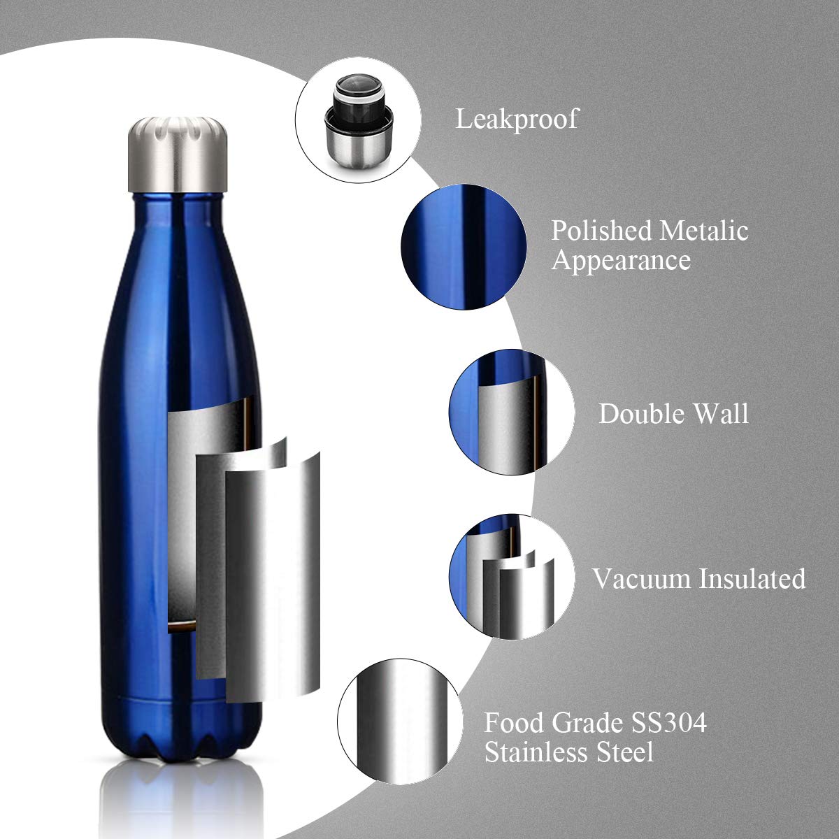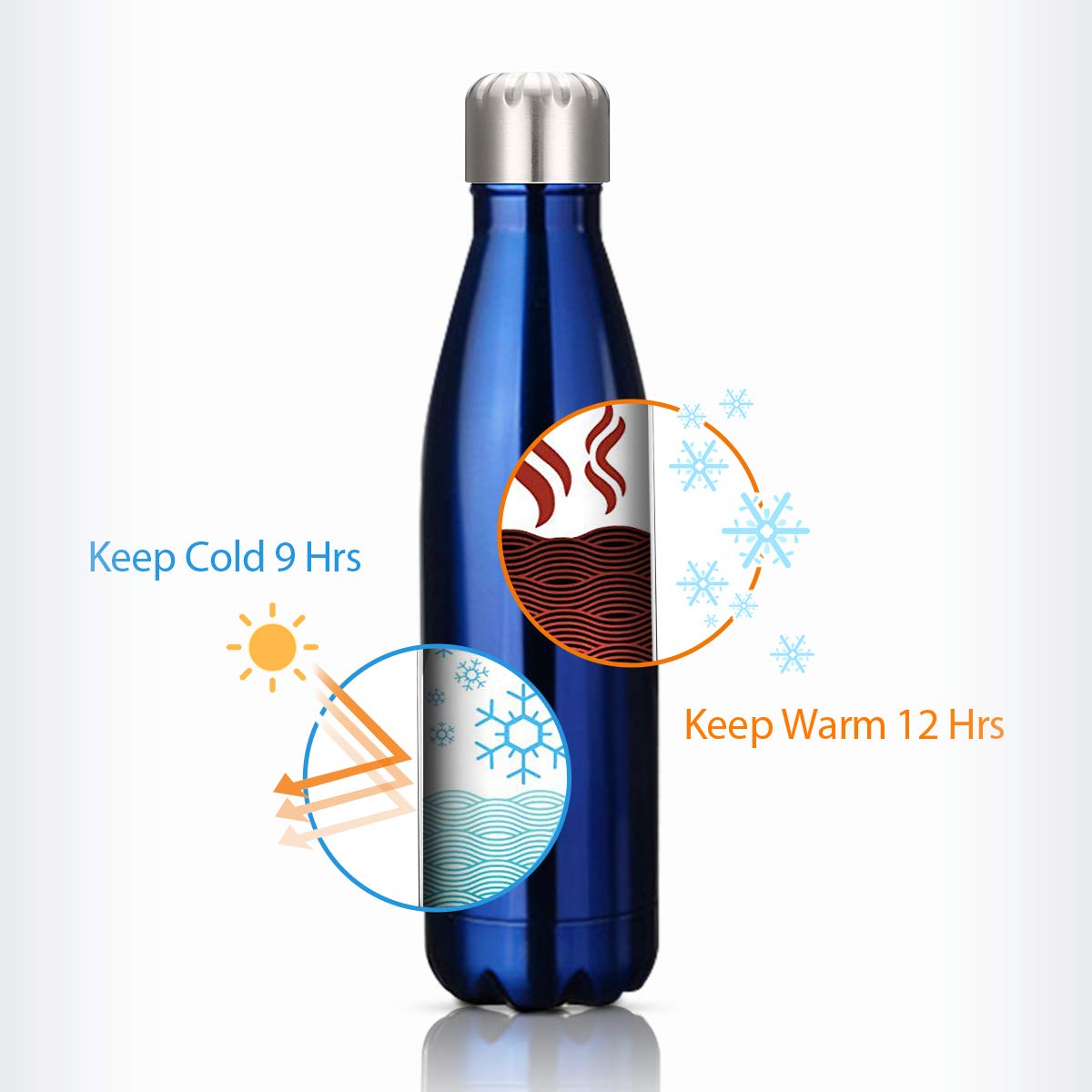 king do way Portatile Borraccia in Acciaio Inox, Termica Bottiglia 500ml, Blu