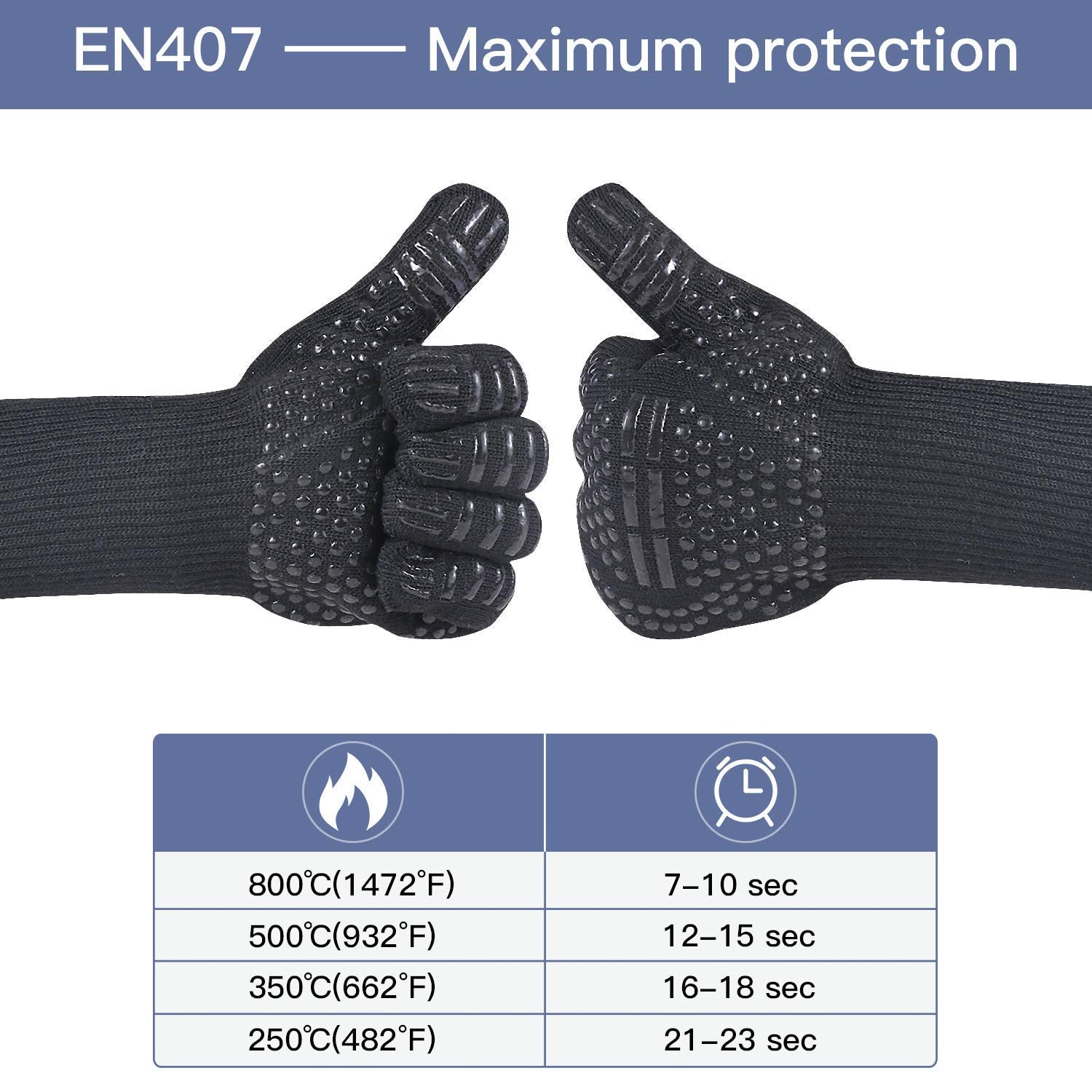 - 🍖[Resistente alle alte temperature Guanti da Forno] - Guanti da barbecue può resistere a temperature fino a 800 °C (1472 °C), La sicurezza è molto forte, l'effetto isolante è molto buono e le maniche lunghe sono meglio protette.