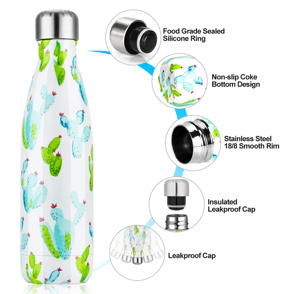 lalafancy Bottiglia di Acqua 500ml, Borraccia Sportiva Thermos Cactus